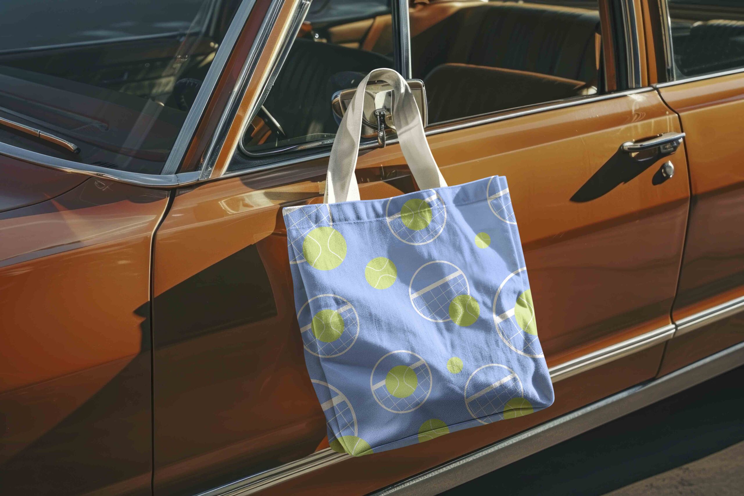A repeatable pattern based on spin arcs and serves ties assets together, from water bottles and totes to social tiles.